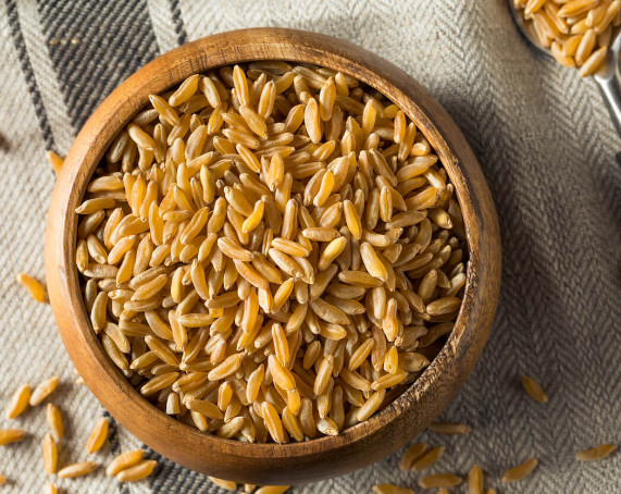 카무트 100g에는 337kcal의 열량이 있으며 탄수화물의 함량은 약 70.4g에 섬유질은 무려 9.1g이 들어 있습니다. 이는 같은 양으로 봤을 때, 현미보다 약 1.5배 가량이 더 많은 수치입니다. 카무트는 현미보다는 식감이 부드러우면서 혈당을 떨어뜨리는 효과가 있어 최근 당뇨가 있으신 분들이 많이 찾는 식품이기도 합니다. 주로 밥이나 샐러드 등에 활용되며 빵, 과자, 그래놀라 등으로도 만들어 먹을 수 있습니다.