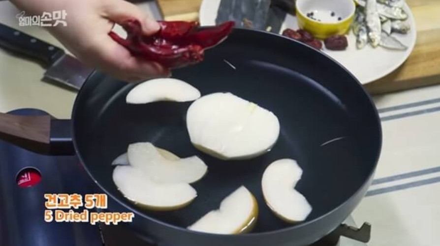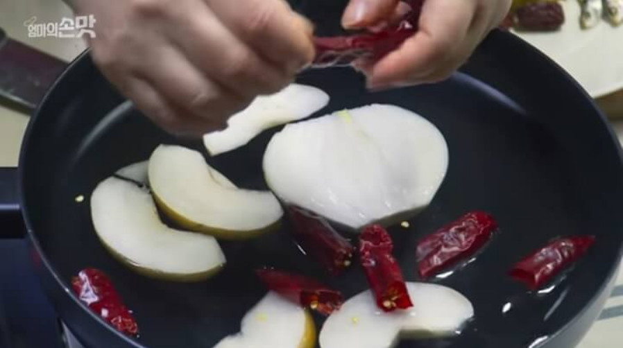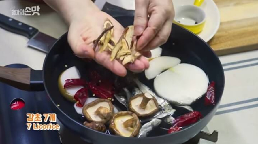 건고추는 칼칼한 맛을 더해주기 위해 반으로 잘라서 넣어주시고, 대추도 단맛이 우러나게 손으로 반으로 갈라 넣어주세요. 감초가 들어가면 단맛을 내주고 비린내도 잡아준다고 해요.