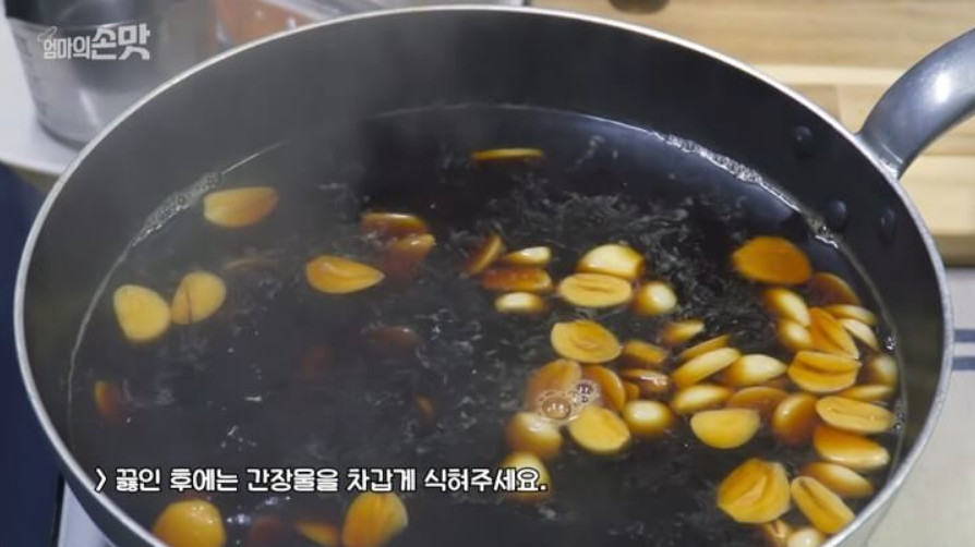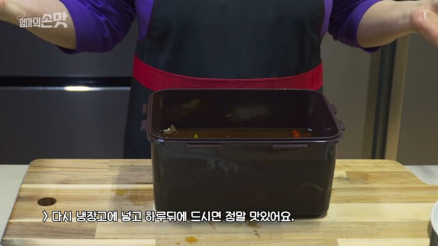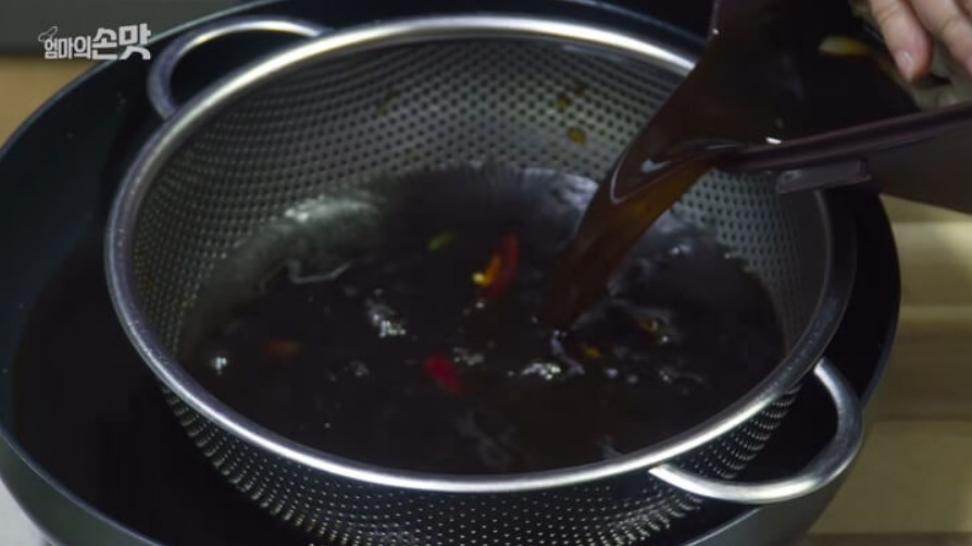 8. 이제 마지막 단계인 간장물 한번 더 끓여서 붓기 단계입니다. 냉장고에서 이틀동안 숙성시킨 간장물을 다시 체에 밭쳐 냄비에 부은 뒤 한번 더 끓여주세요. 보글보글 끓어오르면 불을 꺼주시고 다시 차갑게 식힌 후 게장에 부어줍니다. 이렇게 한 다음 다시 냉장고에 넣어 하루 동안 숙성시키면 맛있는 간장게장이 완성된다고 해요.