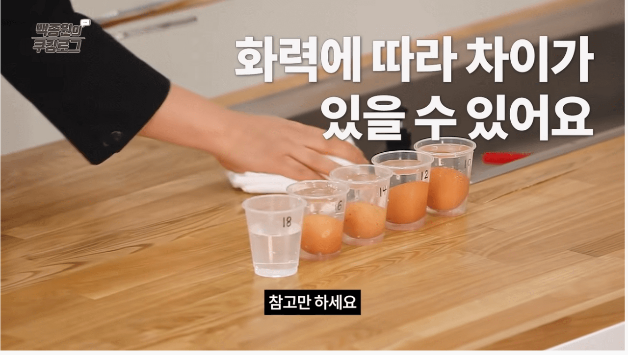 참고로, 백종원 선생님은 달걀의 크기를 대란 기준으로 테스트하셨습니다. 다만, 불의 세기에 따라 결과가 달라질 수 있으며, 이번 테스트는 가스버너를 사용해 진행된 것입니다.