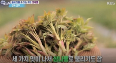 봄철에 가장 먼저 자라는 사나물 중 하나는 바로 눈개승마입니다. 눈을 뚫고 가장 먼저 자라기 때문에 이런 이름이 붙여졌죠. 이 나물은 일 년 중 보름 정도만 수확할 수 있어 고급 산나물로 여겨집니다.