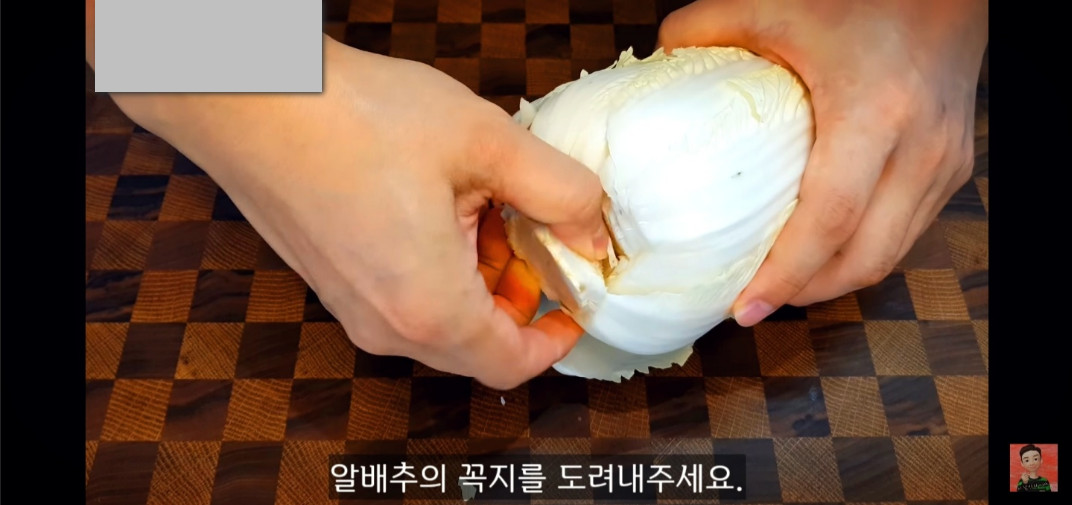 꼭지를 잘라내면 알배추 잎이 쉽게 떨어집니다. 한 장씩 떼어내 주시면 돼요.