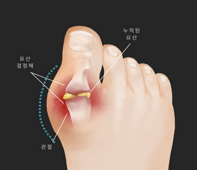 통풍은 우리 몸에 요산 수치가 높아져 통풍 결절이 생기게 되고, 이러한 결절이 관절 주위에 침착해 염증 반응이 생기면서 극심한 통증을 일으키는 질환입니다. 통풍의 고통은 일반적으로 발가락 관절부터 오는데, 그 이유는 발가락 관절이 온도가 제일 낮은 데다가 면적에 비해 관절에 부하가 많이 생기는 부위이기 때문입니다. 통풍은 요산이 많이 들어간 음식인 육류, 등푸른 생선, 맥주 같은 음식을 즐겨 먹는 사람에게 잘 생깁니다. 그리고 운동 부족이나 비만도 통풍의 주요한 원인이 됩니다. 통풍의 증상은 주로 야간에 발생하는 경우가 많고 일반적으로 3~10일간 지속됩니다.
