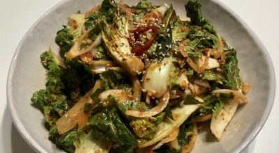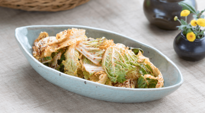 냉이, 달래 등과 함께 대표적인 봄채소로 분류되는 봄동은 겨울에 노지에서 재배된 배추를 말합니다. 겨울의 추운 날씨 때문에 속이 꽉 차지 못하고 잎이 옆으로 퍼져 있게 됩니다. 김장김치보다 수분이 많고 단맛이 강하며, 아미노산이 다양해 씹을수록 고소한 맛이 납니다. 또한, 일반 배추보다 두껍지만 조직이 연하고 씹는 식감이 좋습니다. 외식업소에서는 주로 겉절이, 샐러드 등 양념이나 소스에 무쳐 계절성을 반영한 메뉴로 활용됩니다.