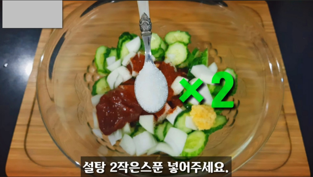 설탕 한 스푼과 참기름 반 스푼을 넣으면 은은한 단맛과 함께 고소한 풍미가 어우러진 오이무침을 즐기실 수 있습니다!