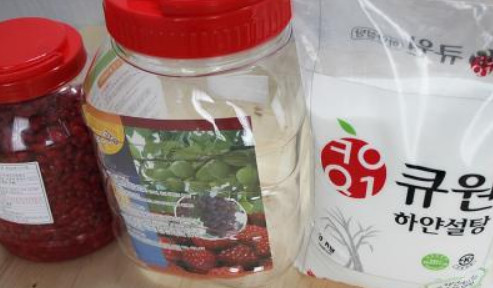 산수유를 깨끗하게 씻고 물기를 완전히 제거한 후 설탕과 1 : 1 비율로 섞어 100일 정도 숙성시키면 됩니다.