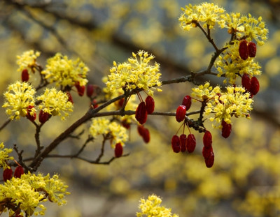 빨간 열매가 열리는 산수유는 층층나무과에 속해있으며, 우리나라와 중국이 원산지입니다. 우리나라의 경우 중부 이남에서 주로 재배하며 전남 구례, 경기 이천, 여주, 양평, 경북 봉화 등이 유명한 재배지이자 자생지입니다. 산수유의 꽃은 노란색으로 3~4월 봄에 잎보다 먼저 핍니다. 산수유 열매는 타원형으로 이는 15~20mm, 너비는 1cm 정도이고 열매의 맛은 떫은 편이며 단 맛이 나기도 합니다. 이러한 산수유는 다양한 방법으로 먹는데, 즙이나 가루로 먹기도 하고 산수유씨를 뺀 다음 산수유를 술로 만들어 먹기도 합니다. 부담없이 산수유를 즐기고 싶다면 산수유를 차로 끓여 마시는 것도 하나의 방법입니다.