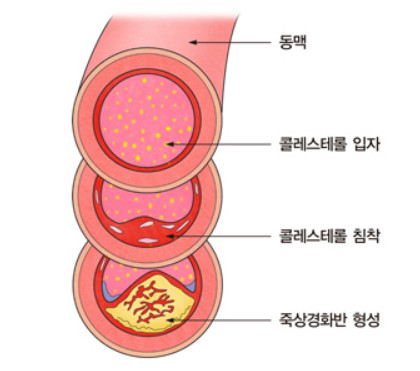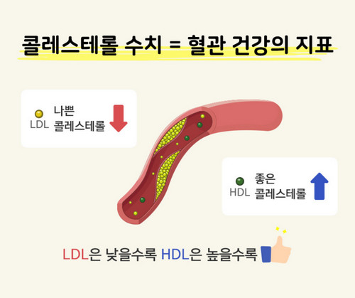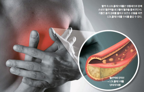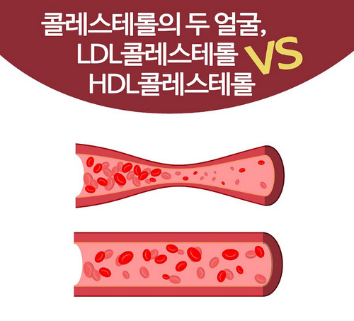 이러한 질환의 원인이 되는 콜레스테롤을 우리는 LDL 콜레스테롤(나쁜 콜레스테롤)이라고 부르며 저밀도 지질 단백질이라고도 부릅니다. 반면 HDL 콜레스테롤(좋은 콜레스테롤)이라도 하고 고밀도 지질 단백질이라고도 하는 우리 몸에 좋은 콜레스테롤도 있습니다. LDL 콜레스테롤은 혈관벽에 많이 축적될 경우 고혈압, 동맥경화, 심근경색증 등 심혈관계 질환을 유발하게 되고 HDL 콜레스테롤은 혈관벽에 침착된 나쁜 LDL 콜레스테롤을 제거하는 기능을 한다고 보면 됩니다.