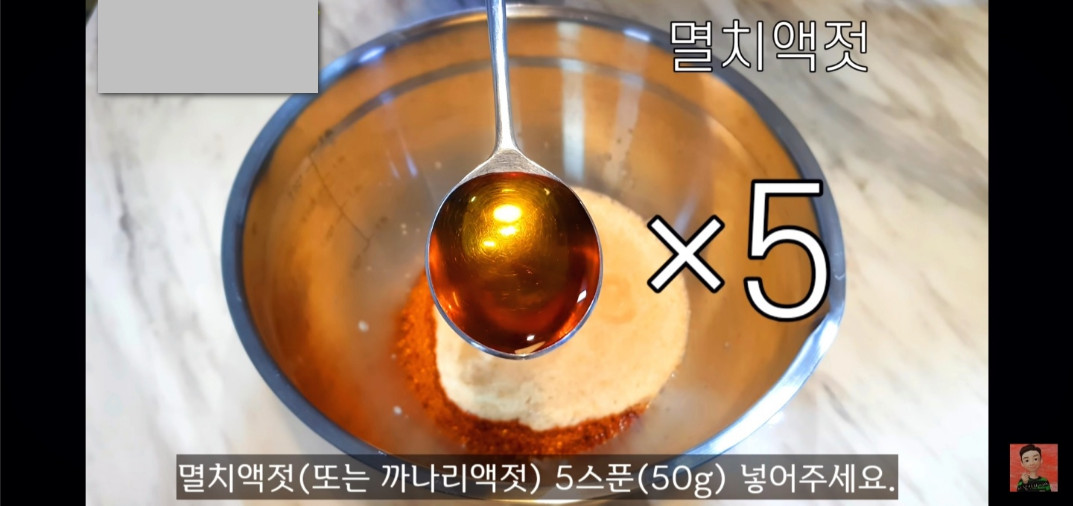 멸치액젓이나 까나리액젓 5스푼, 매실액 2스푼을 넣어 배추겉절이에 감칠맛과 달콤한 맛을 더해 주세요.