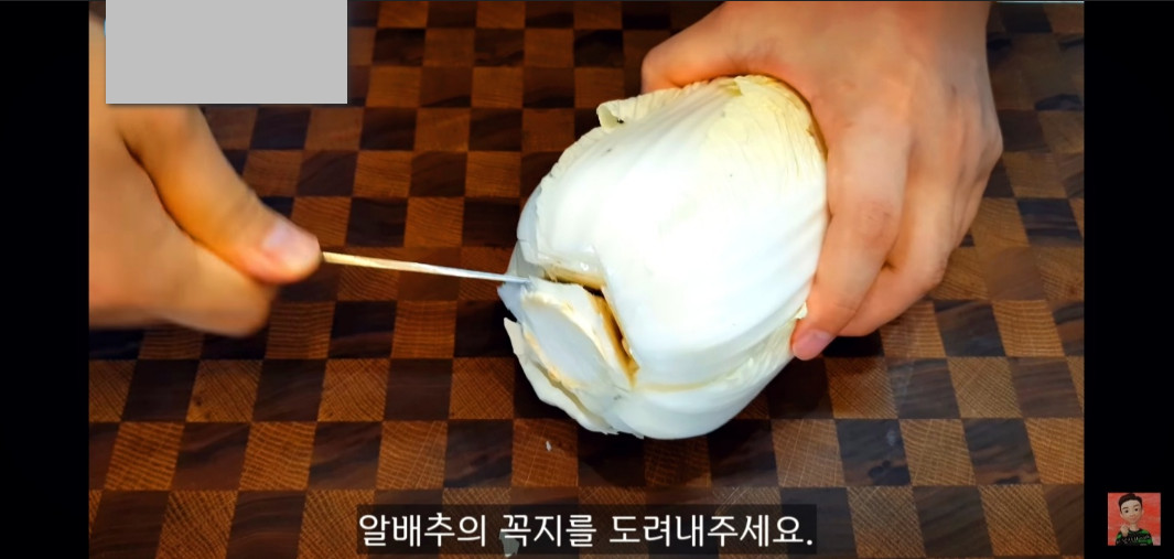 알배추의 꼭지 부분은 과도를 사용해 살짝 잘라내 주세요.