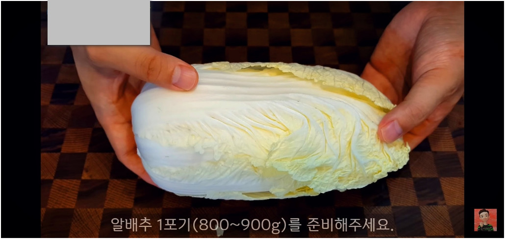 배추겉절이를 만들기 위한 첫 번째 단계는 싱싱한 알배추 한 포기(800~900g)를 준비하는 것입니다.