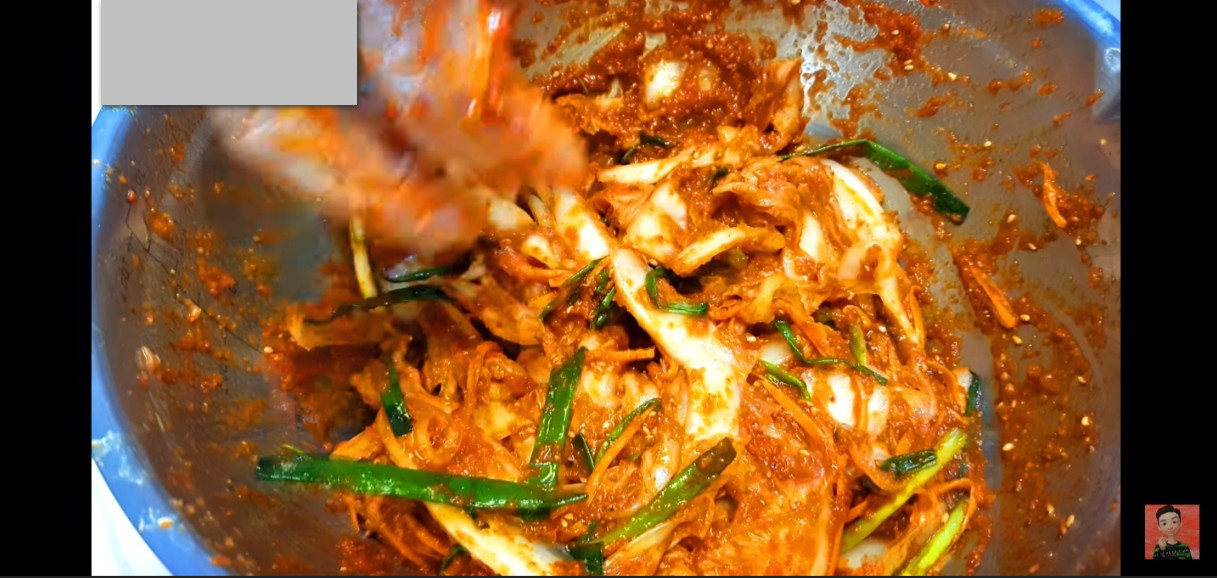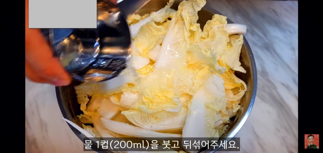 이렇게 잘 섞은 후에는 배추가 부드러워지도록 한 시간 반 정도 절여 주세요. 배추가 절여지는 동안, 배추겉절이의 다음 단계를 준비해보겠습니다.