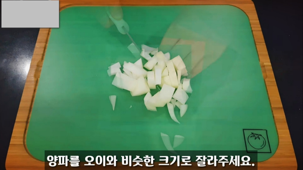 오이무침 황금레시피에 들어갈 양파는 알맞은 크기로 잘게 썰어 준비해주시면 됩니다.