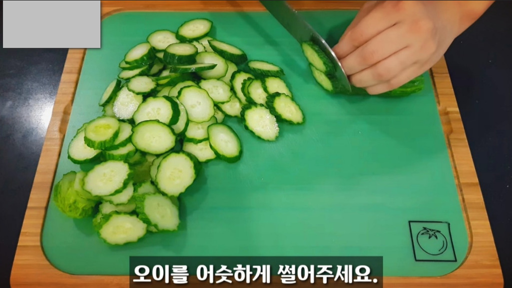오이는 어슷썰기로 먹기 좋은 크기로 썰어 준비해주시면 됩니다.